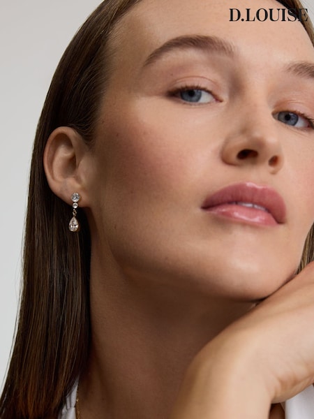 D.Louise Gold Tone Pear Drop Earrings with Stones