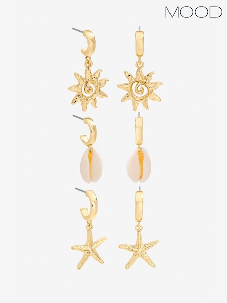 Mood Gold Tone Real Shell Charm Earrings Pack of 3