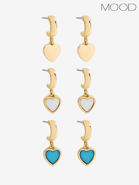 Mood Gold Tone Blue Enamel and Mother of Pearl Heart Earrings - Pack of 3