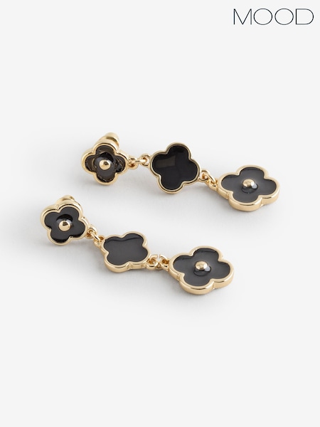Mood Jet Black Gold Tone Clover Multi Row Earrings