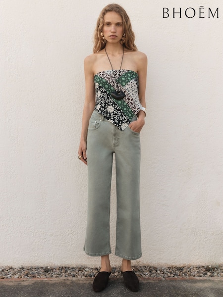 BHOEM Light Green High Rise Wide Leg Stretch Denim Culottes