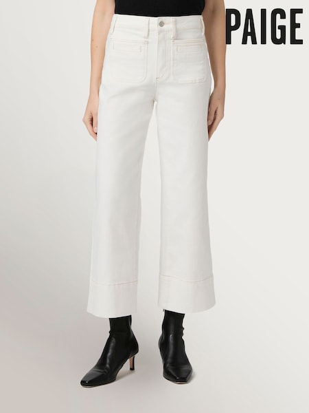 Paige Ecru Wide-Leg Patch Pocket Jeans