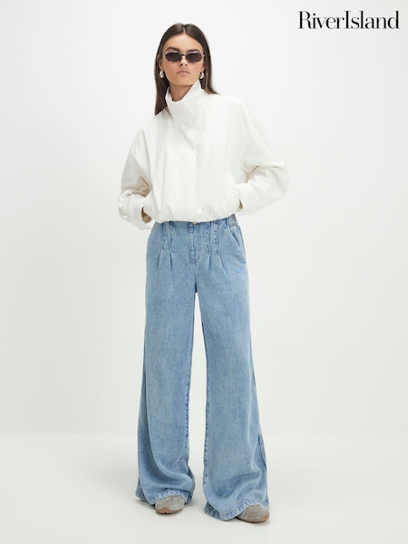 River Island Blue High Waisted Elasticated Dart Front Wide Leg Jeans