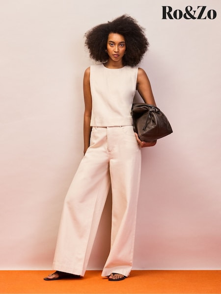 Ro&Zo Natural Petite Cotton Twill Wide Leg Jeans