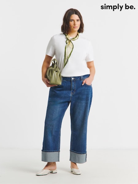 Simply Be Blue Cropped Straight Leg Turn Up Jeans