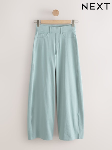 Light Sage Green Jersey Denim Wide Leg Trousers
