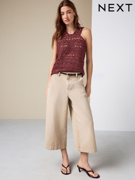 Neutral Stone Wide Leg Cropped Denim Chinos