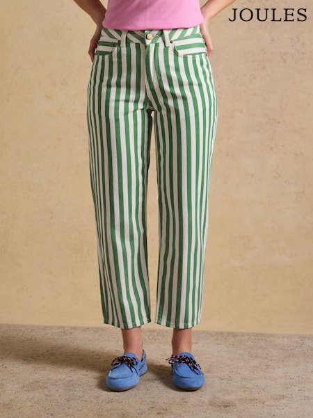 Joules Green Striped High-Waisted Tapered Fit Jeans