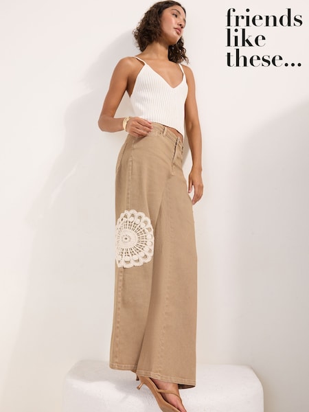 Friends Like These Natural Crochet Everyday Wide Leg Jeans