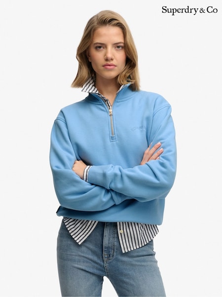 Superdry Blue Country Club Appliqué Half Zip Jumper