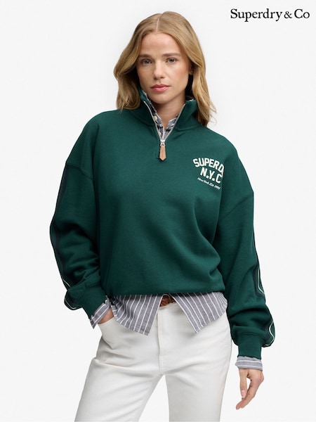 Superdry Green Country Club Appliqué Half Zip Jumper