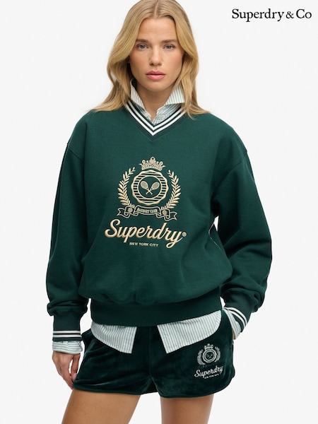 Superdry Green Country Club Loose V-Neck Sweatshirt