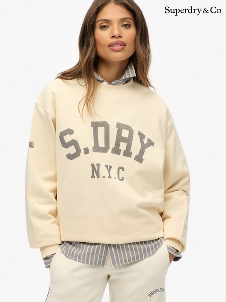 Superdry Cream Athletic Essentials Slouchy Crew Neck Sweatshirt