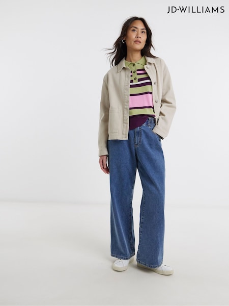 Joules Green & White Striped Cotton Crew Neck Jumper