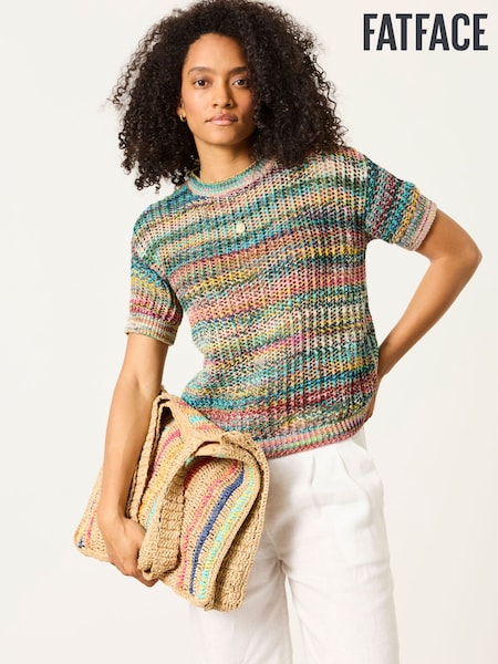 Love & Roses Green And Red Striped Frill Neck Short Sleeve Knitted Jumper