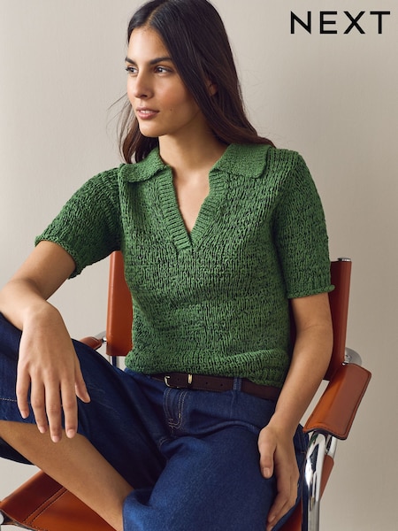 Dark Green Cotton Rich Short Sleeve Stitch Polo Top