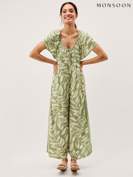 Monsoon Green Lillie Leaf Print Jumpsuit