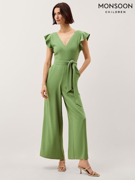 Monsoon Green Riri V-Neck Frill Jumpsuit