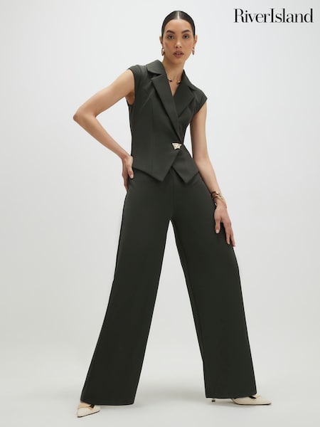 River Island Green Cap Sleeve Wide Leg Jumpsuit