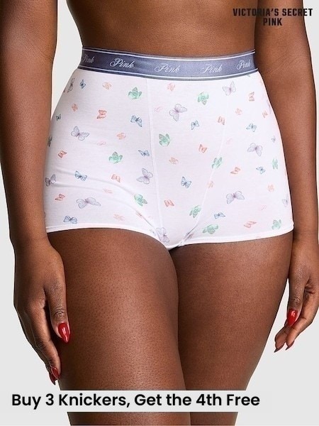 Victoria's Secret PINK White Butterfly Print High Waist Cotton Logo Knickers