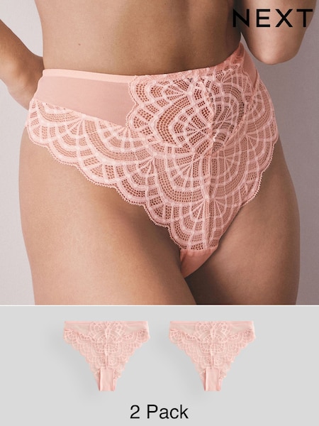 Apricot High Rise High Leg Lace Knickers 2 Pack