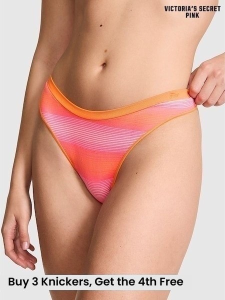 Victoria's Secret Pink Vitamin C Orange Stripe Print Thong Knickers