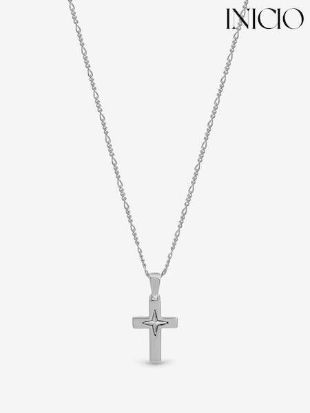 Inicio Sterling Silver Plated Polished Cross Pendant Gift Pouch