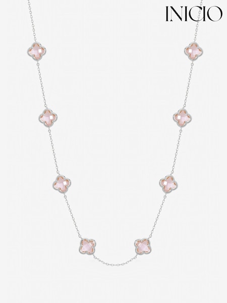 Inicio Pink Vintage Rose Clover Necklace - Gift Pouch
