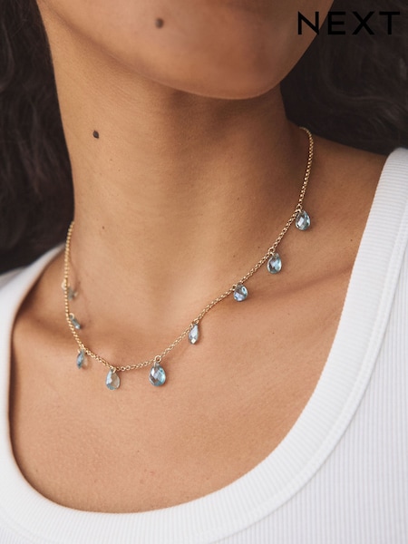 Jon Richard Blue Gift Boxed Rhodium Plate Cubic Zirconia Statement Necklace