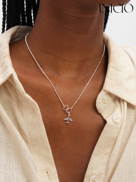 Inicio Sterling Silver Plated Interlink Heart Plane Necklace - Gift Box
