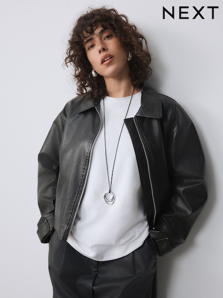 Jon Richard Black Tone Jet Clover Pendant Necklace