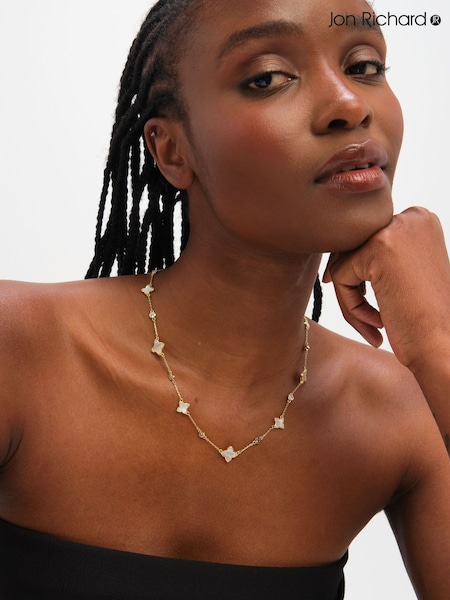 Jon Richard Gold Tone Mother of Pearl and Crystal Clover Necklace