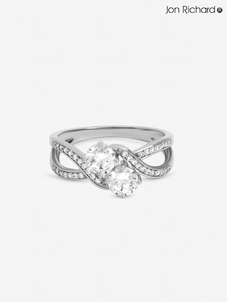 Jon Richard Silver Tone Cubic Zirconia Double Stone Ring