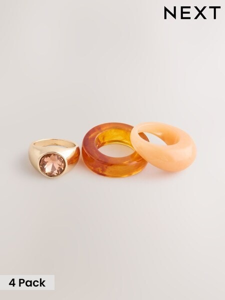 Peach/Brown Resin Stone Ring 3 Pack