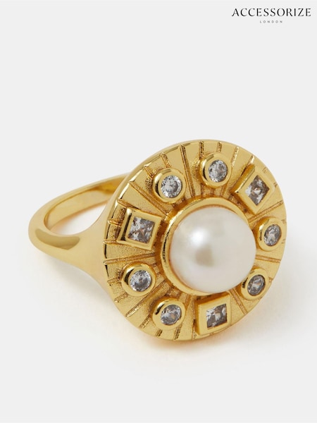 Accessorize Gold Tone 14ct Plated Pearl Coin Ring