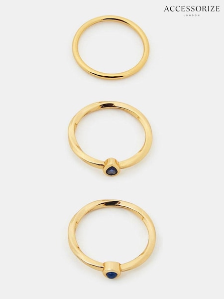 Accessorize Gold Tone 14ct Gold-Plated Stacking Stone Rings 3-Pack