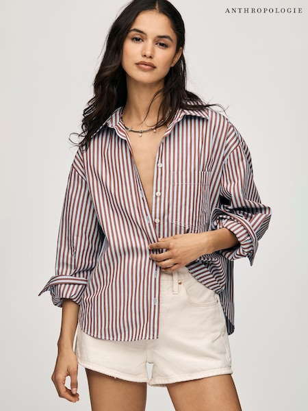 Anthropologie Maeve Shrunken Bennet Buttondown Brown Shirt