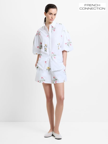 French Connection Natural Candice Satin Lace Mix Long Sleeve Shirt