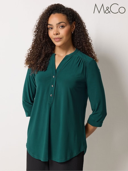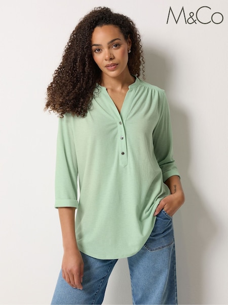 M&Co Green Half Placket Collarless Shirt
