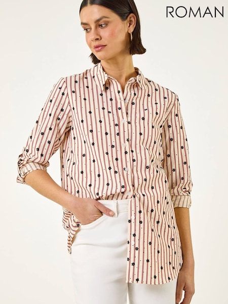 Roman Brown Floral Stripe Buttoned Shirt