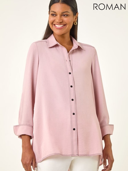 Roman Pink Constrast Stitch Shirt