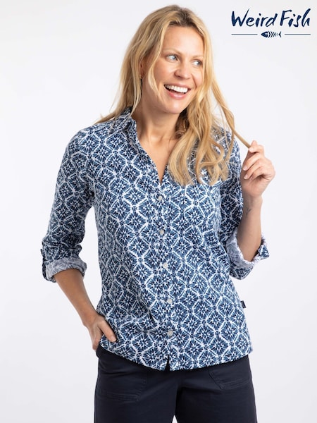 Weird Fish Blue Syona Double Cloth Printed Shirt