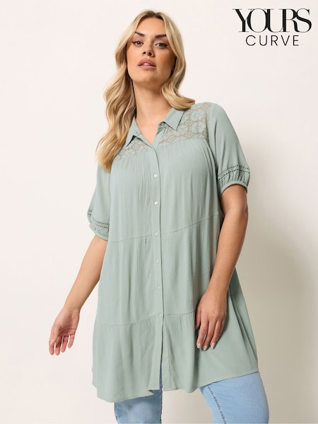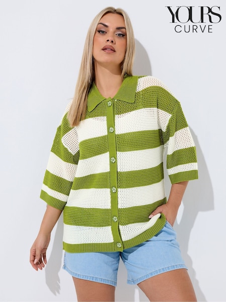 Yours Curve Green Limited Stripe Boxy Knitted Shirt