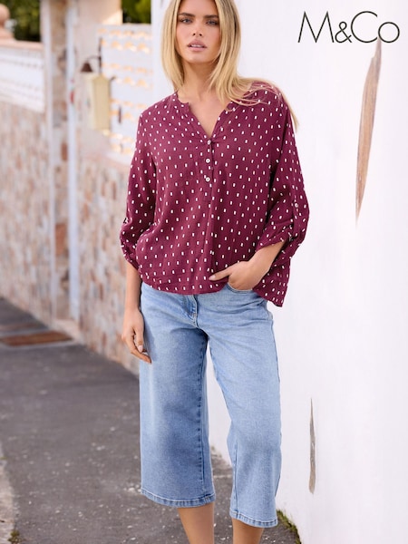 M&Co Purple Petite Notch Neck Long Sleeve Dobby Shirt
