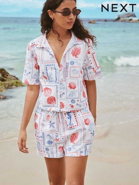 Map Print Cotton Rich Towelling Tie Front Shirt
