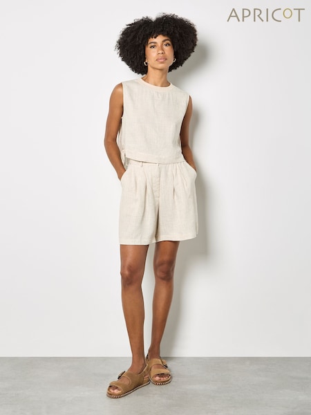 Apricot Natural Linen Blend Pleated Mini Shorts