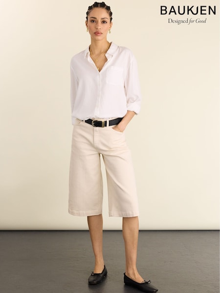 Baukjen Cream Tillie Cotton Stretch Denim Shorts