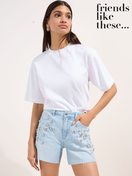 Friends Like These Bleach Wash Diamante A Line Denim Shorts