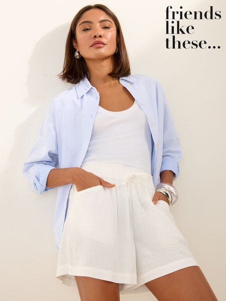 Friends Like These x Lucy Mecklenburgh White Tailored Bermuda Shorts with Linen