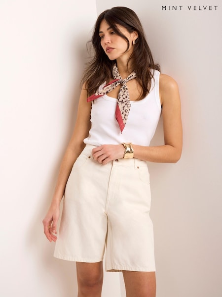 Mint Velvet White Denim Mid Length Shorts